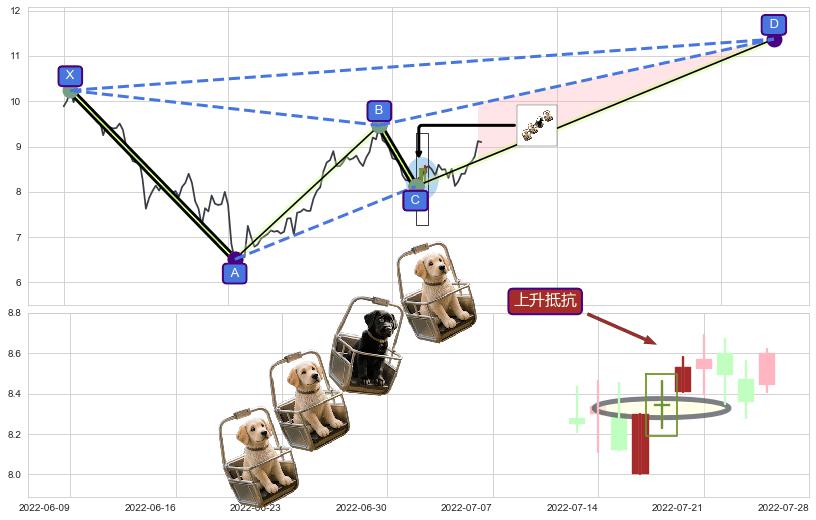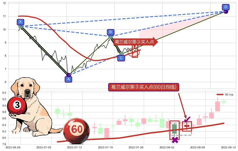 ➣ D点拟合预测价格11.37,距离最后交易收盘价格9.10相差 +24.98%