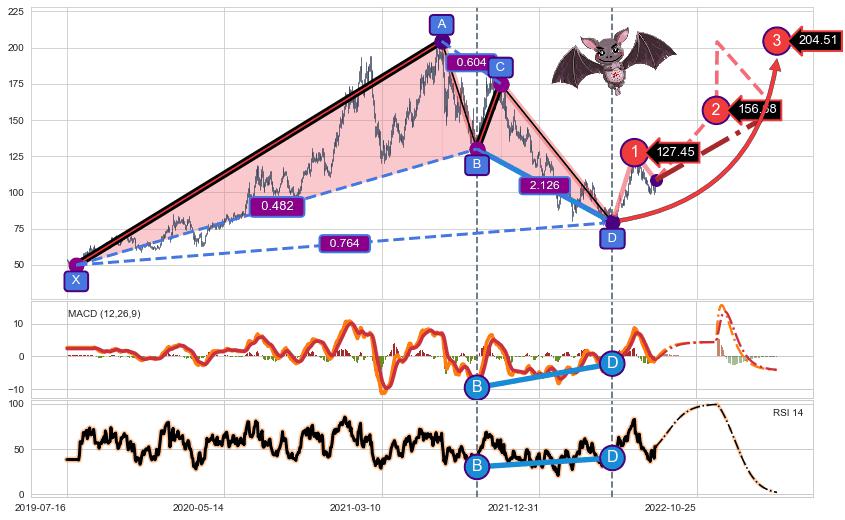 ➣ 已完成【蝙蝠】形态起点X: 2019-08-01, 终点D: 2022-05-26, 共682交易日
