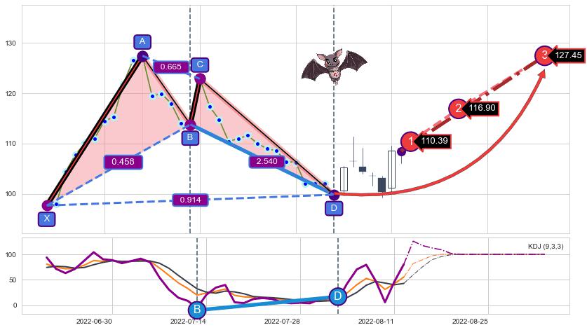 ➣ 已完成【蝙蝠】形态起点X: 2022-06-22, 终点D: 2022-08-03, 共31交易日