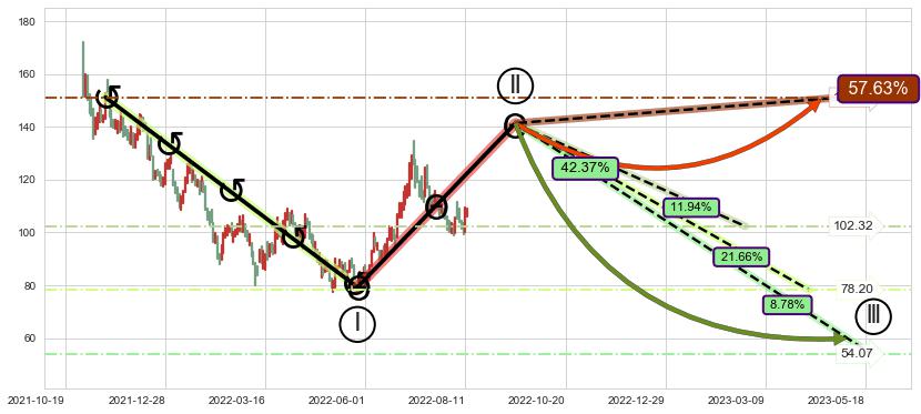 ♘ 阻力价格位168.76,可信任强度85.26%,距离最后交易2022-08-12形成的收盘价格108.51相差 +55.52%