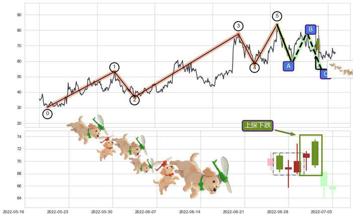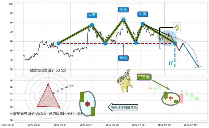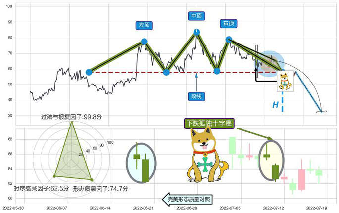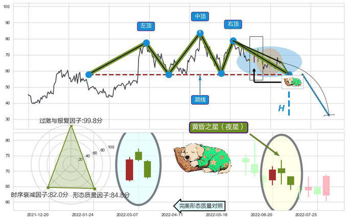 ➢ 🕰 价格走势在2022-06-20至2022-07-04期间形成黄昏之星(夜星),残存影响值:-7.75