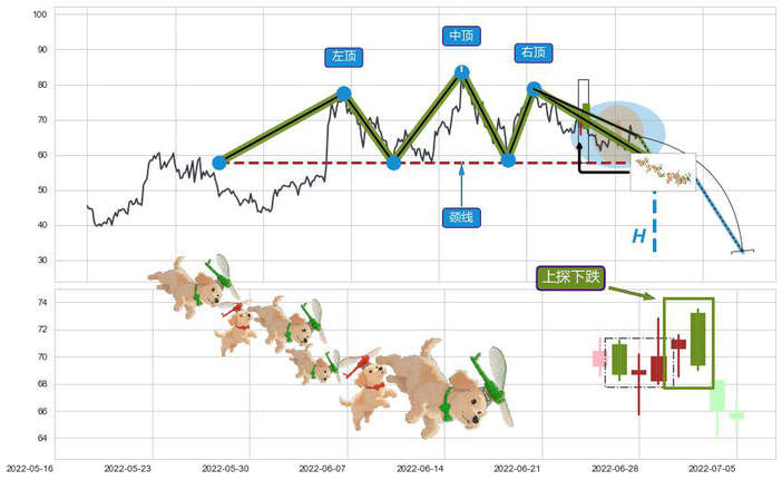 ➢ 🐸 上探下跌形态方向: 消极反向形态,对未来预期 看空