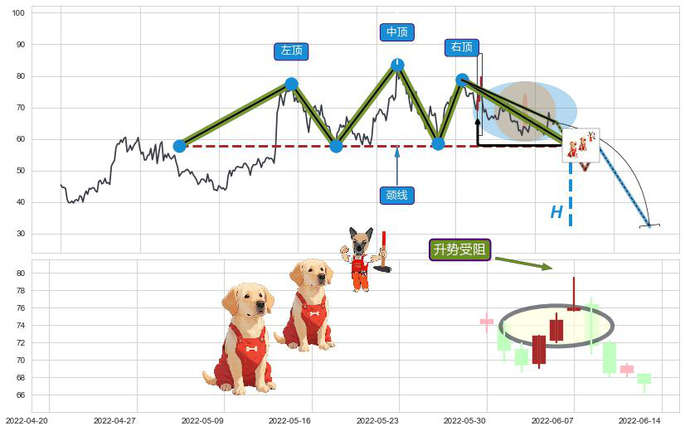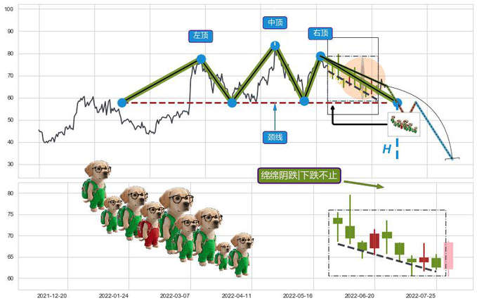 ➢ 三重顶:猜想临近关键支撑位突破点 → 临近拐点下跌 → 风险信号 → 大趋势均值回复