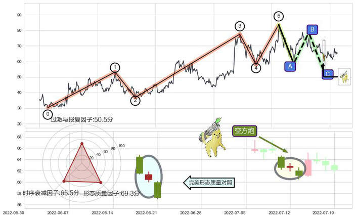 ➢ 🕰 价格走势在2022-07-11至2022-07-13期间形成空方炮,残存影响值:-1.30