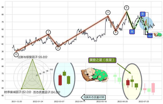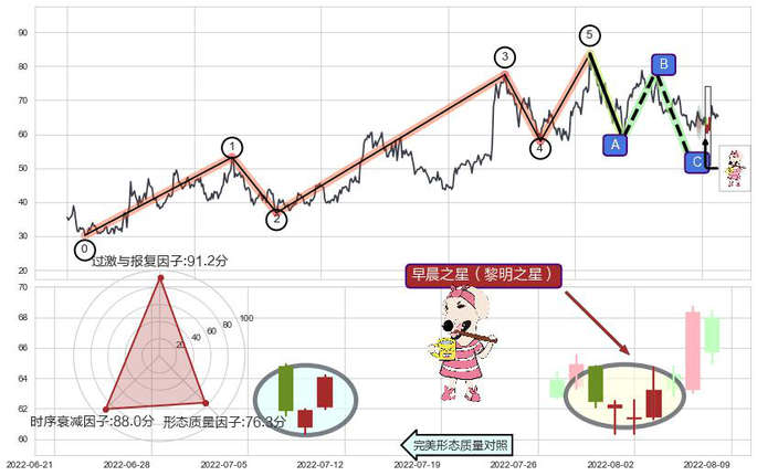 ➢ 🕰 价格走势在2022-07-29至2022-08-03期间形成早晨之星(黎明之星),残存影响值:6.07
