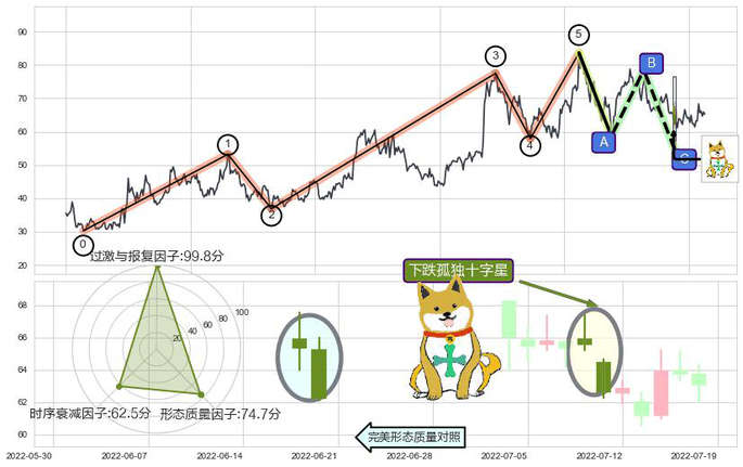 ➢ 🕰 价格走势在2022-07-08至2022-07-11期间形成下跌孤独十字星,残存影响值:-6.42