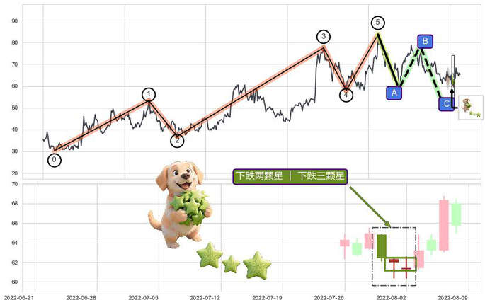 ➢ 🕰 价格走势在2022-07-29至2022-08-02期间形成下跌两颗星 | 下跌三颗星,残存影响值:-7.39