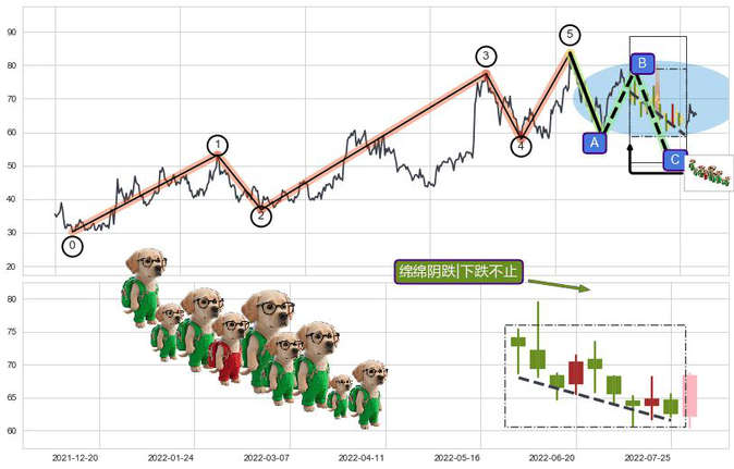 ➢ 🕰 价格走势在2022-05-30至2022-07-25期间形成绵绵阴跌|下跌不止,残存影响值:-9.39