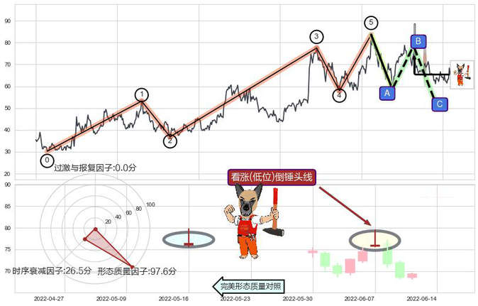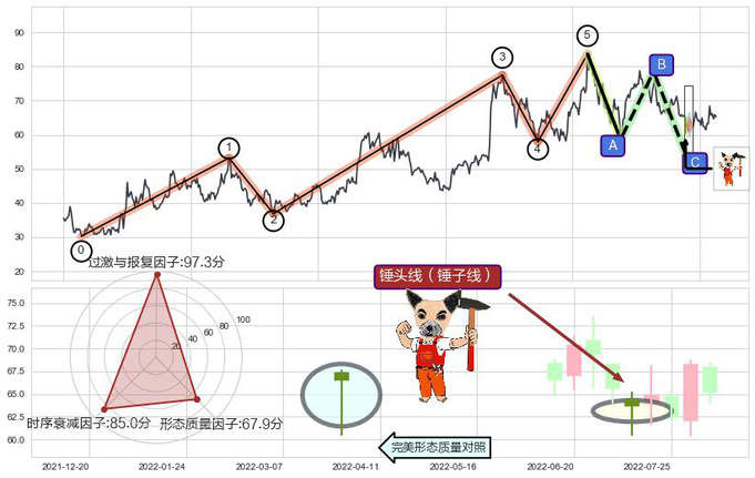 ➢ 锤头线(锤子线) 🔜 波浪理论c点回调终止反转上涨 综合量化分数:54.21 【偏多】
