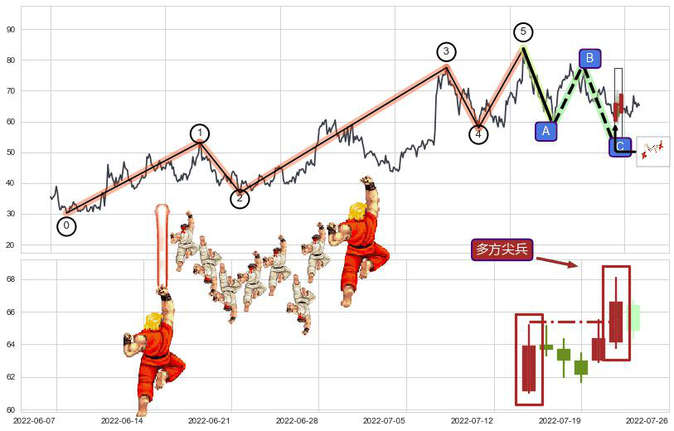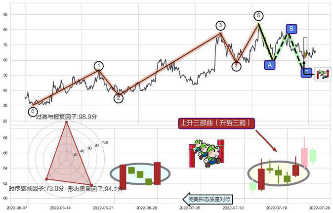 ➢ 🕰 价格走势在2022-07-14至2022-07-20期间形成上升三部曲(升势三鸦),残存影响值:4.55