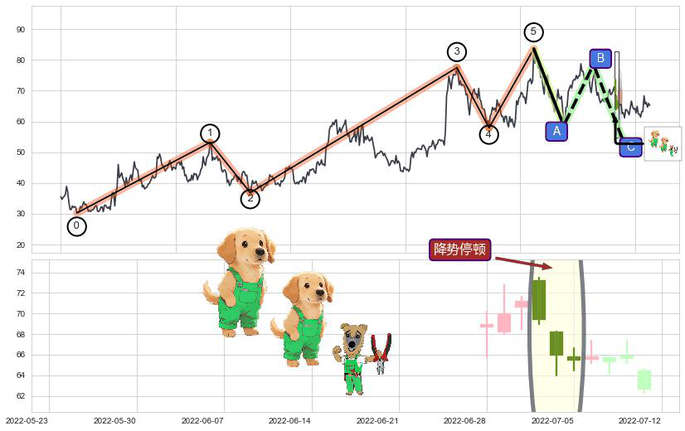 ➢ 🕰 价格走势在2022-07-01至2022-07-05期间形成降势停顿,残存影响值:7.06