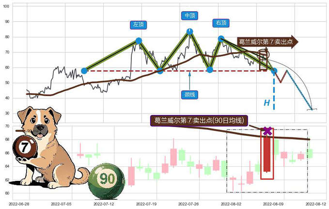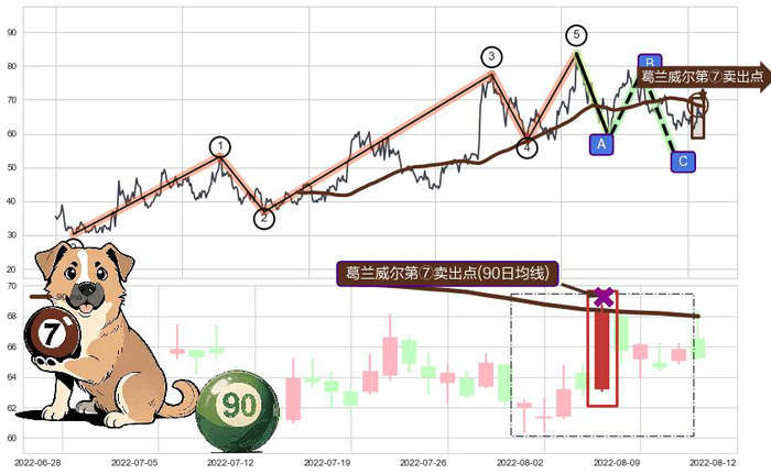 ➣ 🕰 价格走势在2022-08-01至2022-08-11期间形成葛兰威尔第⑦卖出点,残存影响值:-30.26