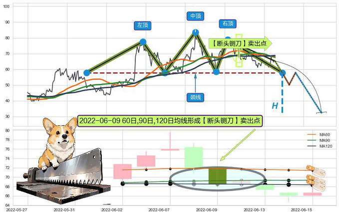 ➣ 🕰 价格走势在2022-06-06至2022-06-14期间形成【断头铡刀】卖出点,残存影响值:-32.81
