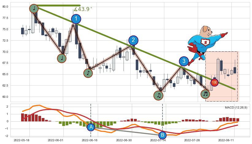 ➢ 2022-08-05到达第❶价格目标位置68.34