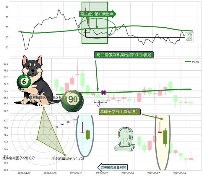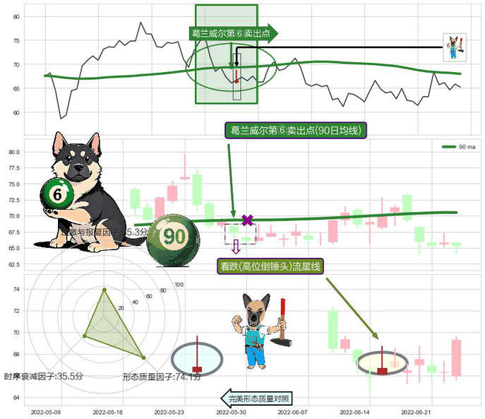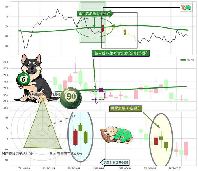 ➣ 黄昏之星(夜星) + 葛兰威尔第⑥卖出点葛兰威⑥卖:趋势逆转拐点信号叠加后【信号初始稳固度】中等,【看空】信号叠加【可信度影响中等】