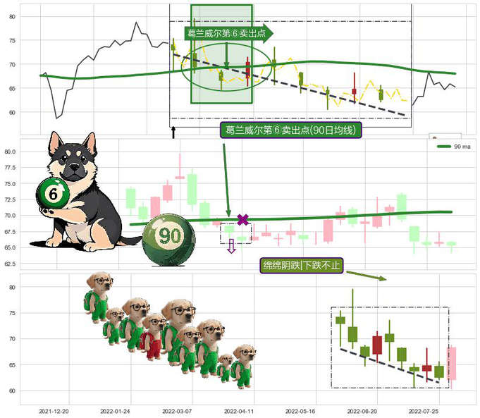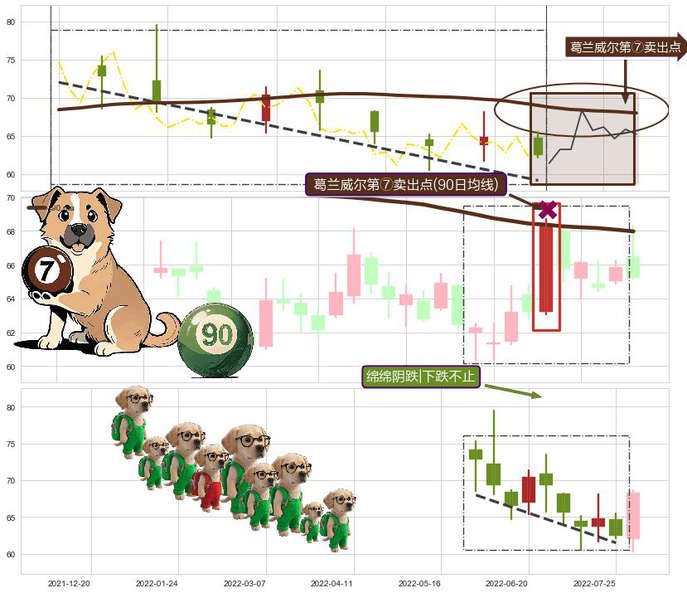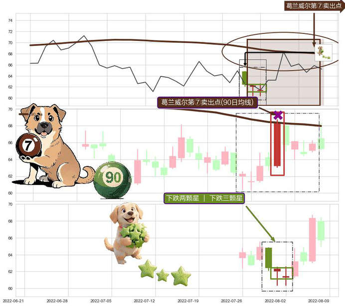 ➣ 2022-08-05-日显现 葛兰威尔均线 90日均线 第⑦卖出点 下降趋势的中继信号,后市看跌,卖出信号