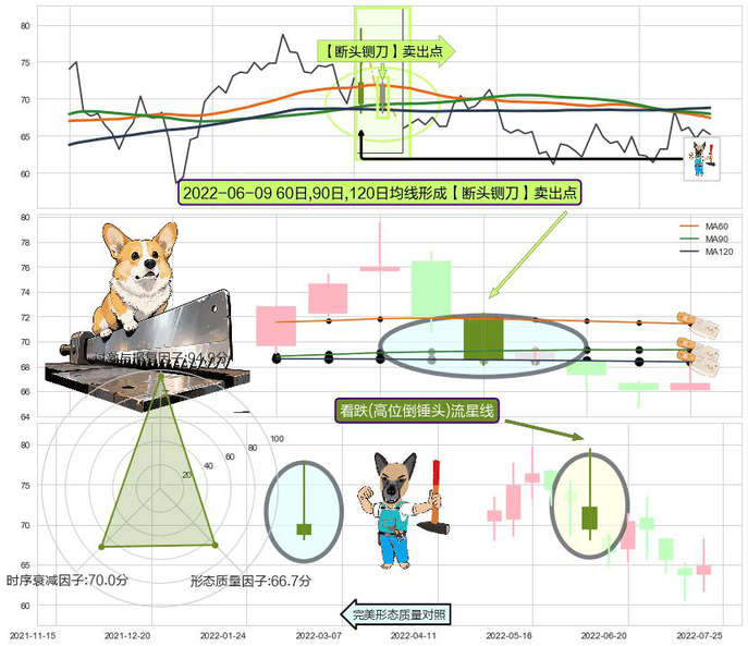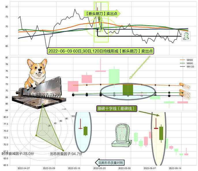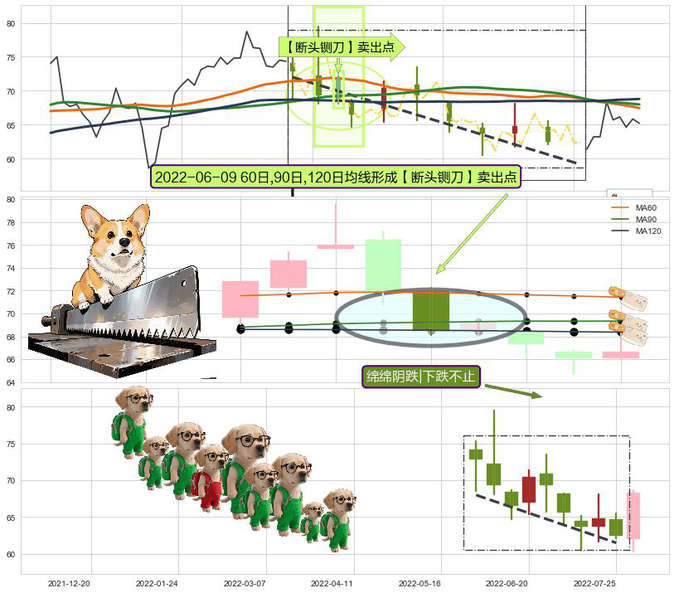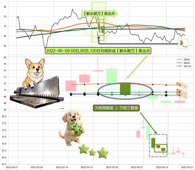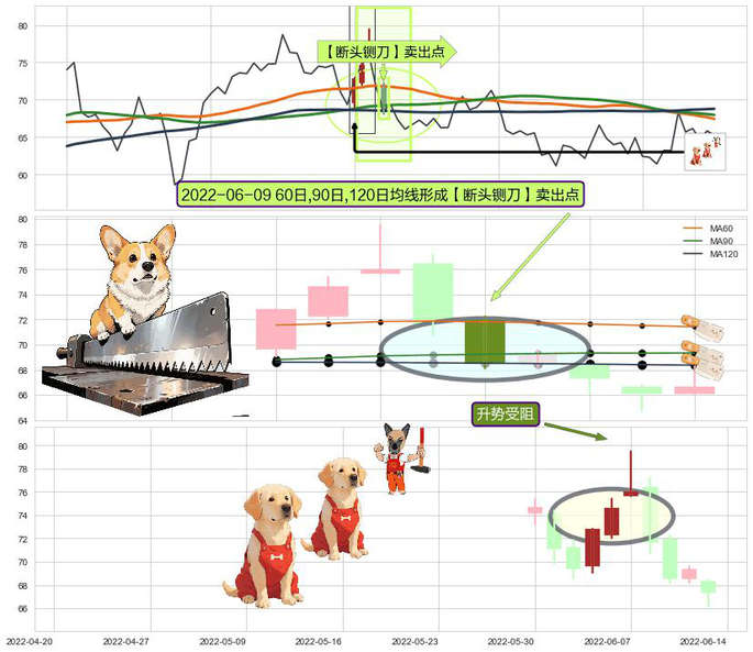 ➣ 2022-06-09日显现 60日-90日-120日均线 【断头铡刀】卖出点 看空信号,后市看跌,卖出