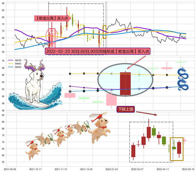 ➣ 2022-02-23日显现 30日-60日-90日均线 【蛟龙出海】买入点 看多信号,后市看涨,买入