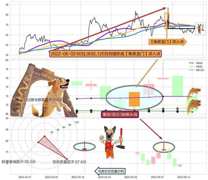 ➣ 2022-06-02日显现 60日-90日-120日均线 【鱼跃龙门】买入点 看多信号,后市看涨,买入