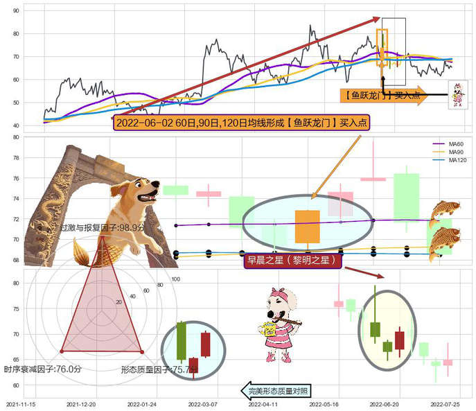 ➢ 早晨之星(黎明之星) 🔜 【鱼跃龙门】买入点鱼跃龙门均线交叉买入点 综合量化分数:50.57 【中性】