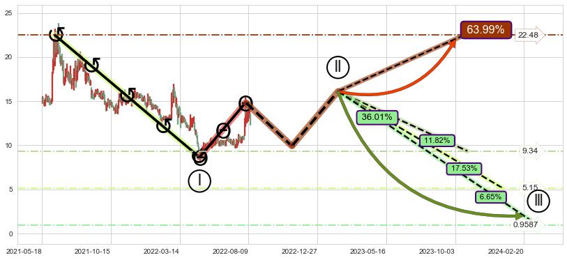 ♘ 支撑价格位9.43,可信任强度56.31%,距离最后交易2022-08-12形成的收盘价格12.35相差 -23.68%