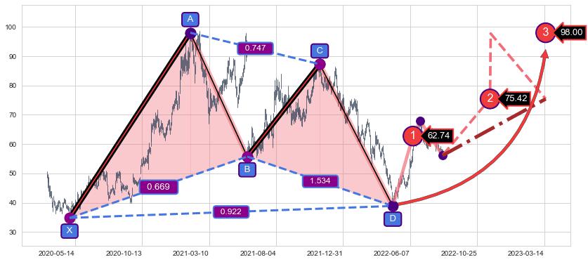 ➢ 2022-06-13到达第❶价格目标位置62.74