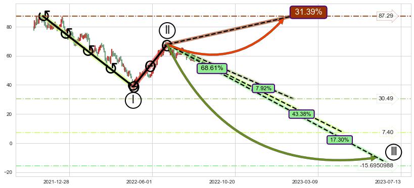 ➢ 循环浪继续向下【最低】位置(2023-07-13, -15.6950988),匹配聚类样本比例25.22%, 可能性概率17.30%