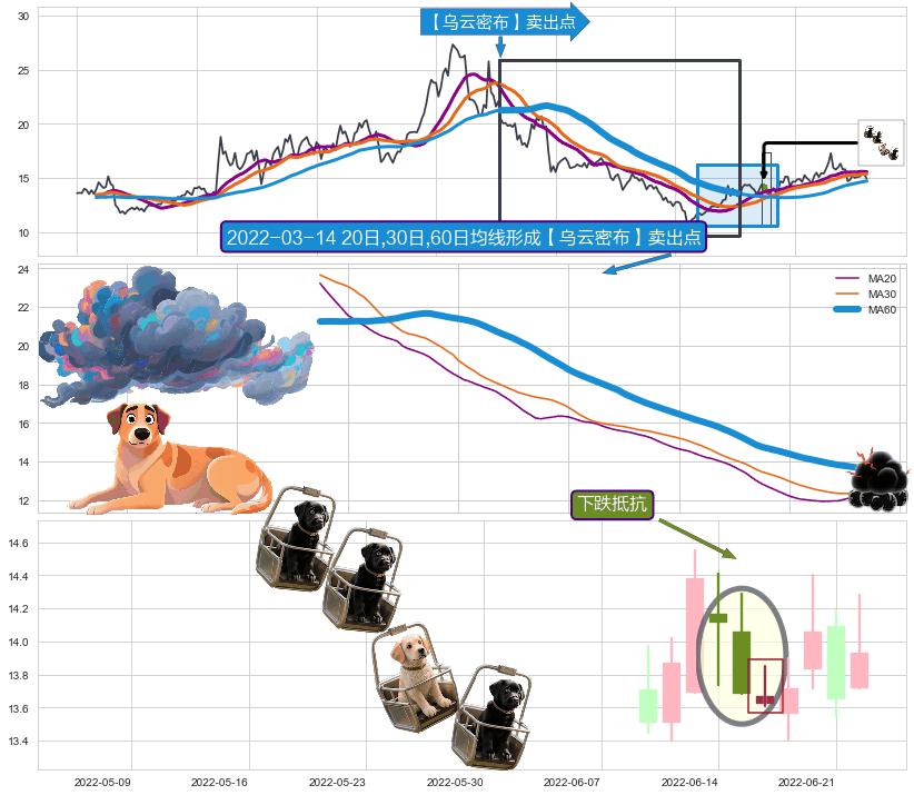 | 4 🅚:乌云盖顶 ➕ 🎢:【乌云密布】卖出点均线组合卖出点信号形成后,猜想后续下行持续,下跌加速(趋势跟踪) ☞ 看空信号 ⇥ 【均线】交织【🅚线】⇥ 综合量化分数: 49 | > |