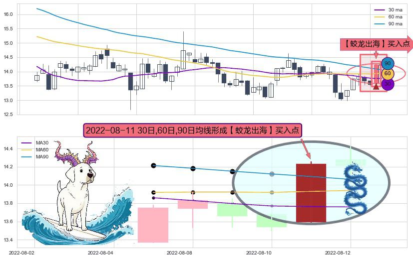 形态多维评估: ⚀ 2022-08-11日显现 30日-60日-90日均线 【蛟龙出海】买入点 看多信号,后市看涨,买入