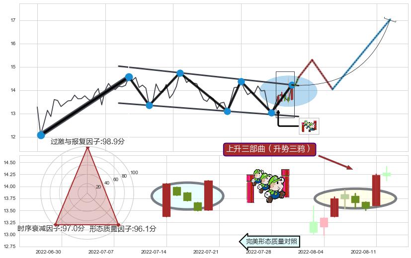 ➢ 【买1】: 激进型 买点 →(2022-08-04: 13.14 )形成突破降🚩楔型【整理】形态