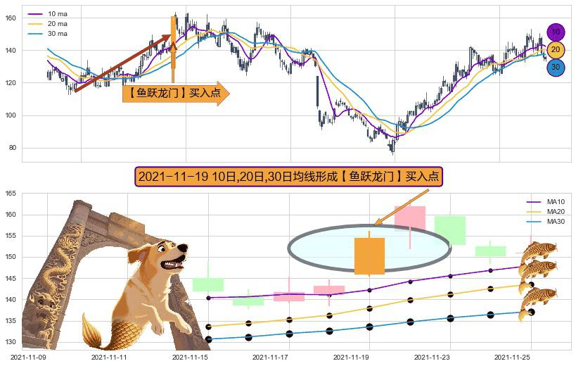 形态多维评估: ⚀ 2021-11-19日显现 10日-20日-30日均线 【鱼跃龙门】买入点 看多信号,后市看涨,买入