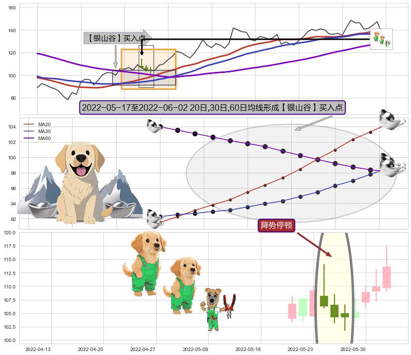 | 3 🅚:上涨两颗星 | 上涨三颗星 ➕ 🎢:【金银山谷】买入点均线组合买入点信号形成后,猜想后续突破上升,沿着向上的尖头三角上涨 ☞ 看多信号 ⇥ 【均线】交织【🅚线】⇥ 综合量化分数: 54 | > |