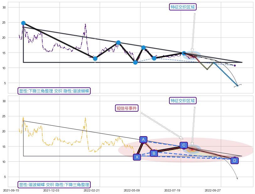 ➣ 未完成【蝴蝶】形态起点X: 2022-04-28, 已到达C点: 2022-07-25, 预测最终D点: 2022-10-20, 共115交易日