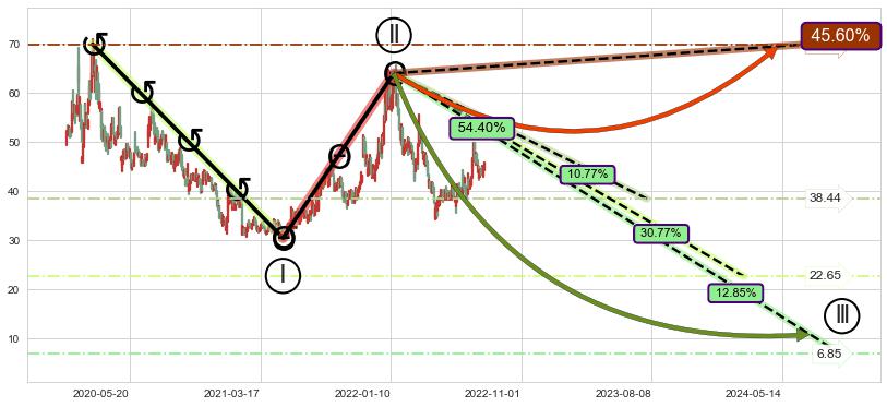 ♘ 支撑价格位33.37,可信任强度96.53%,距离最后交易2022-08-12形成的收盘价格45.46相差 -26.60%