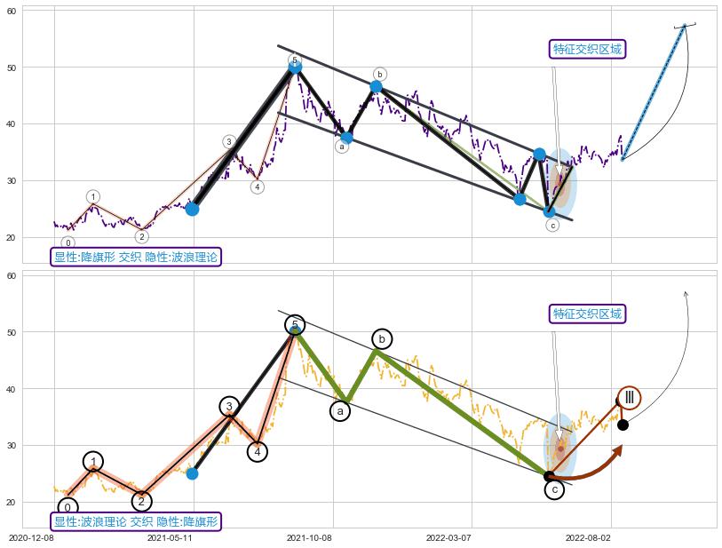 ➣ 阻力位【②④⑥】波动逐渐走低,构成【旗形】上平行线