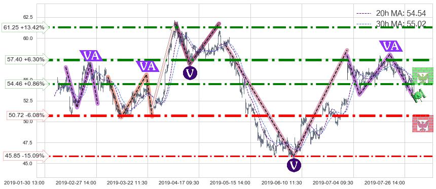 ♘ 阻力价格位54.46,可信任强度75.28%,距离最后交易2019-07-31 15:00形成的收盘价格54.00相差 +0.86%