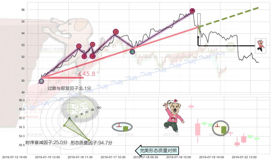 ➢ 🕰 价格走势在2019-07-19 13:00:00至2019-07-19 14:00:00期间形成射击之星形态,残存影响值:-1.94