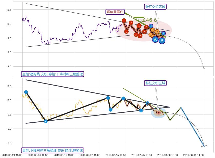 ➢ 趋势线属【短级别信号事件】下降对称三角整理属【长级别信号事件】长短周期组合信号事件, 短长事件长度比31.98%