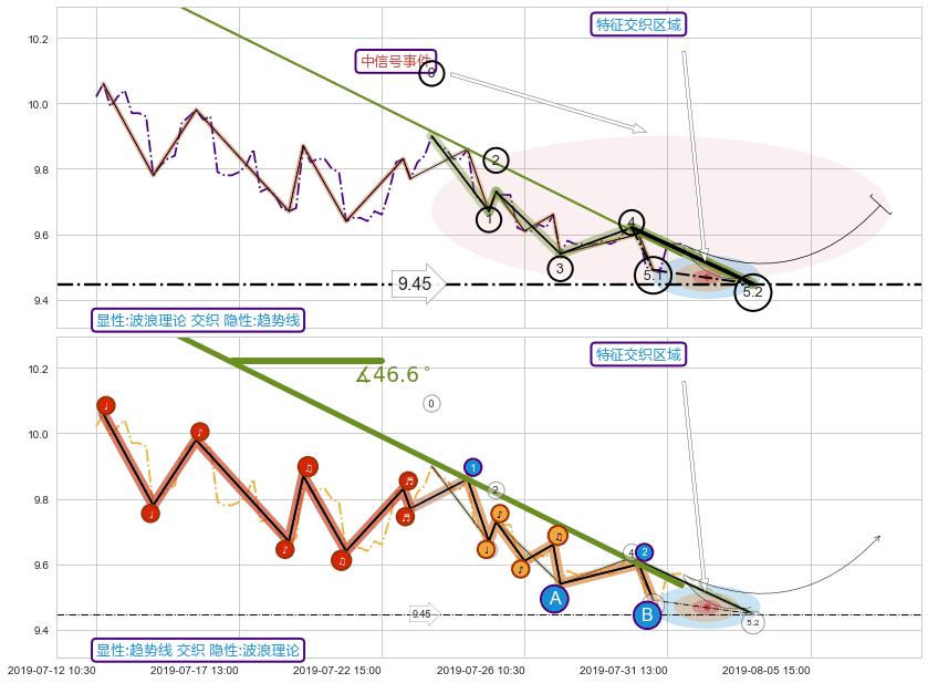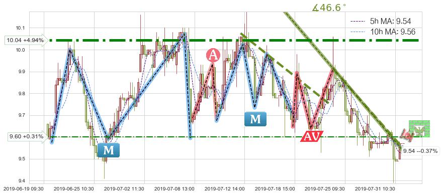 🦴 长线均值回复组合短线趋势跟踪[强阻力信号]2019-07-12 11:30-2019-07-31 15:00下跌趋势依然成立(下跌趋势跟踪依然存在),短线价格略微上行反弹(均值回复猜想),即将接近下跌趋势提供的未破位阻力价格:9.54。