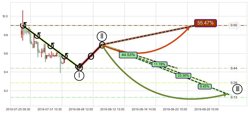 ➢ 循环浪继续向下【最高】位置(08-21:13, 9.44),匹配聚类样本比例26.44%, 可能性概率11.78%