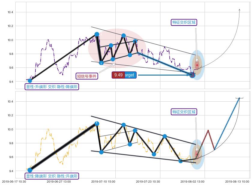 ➣ 底部尽头线(上山虎) + 升旗形target支撑拐点上涨信号叠加后【目标达成率】中等,【看多】信号叠加【存续影响中等】