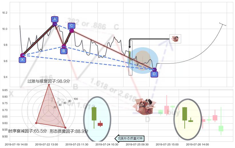 ➢ 🕰 价格走势在2019-07-26 09:30:00至2019-07-26 10:30:00期间形成底部尽头线(上山虎),残存影响值:7.09