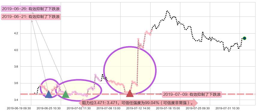 ♘ 阻力价格位4.16,可信任强度51.59%,距离最后交易2019-07-31 15:00形成的收盘价格4.14相差 +0.58%