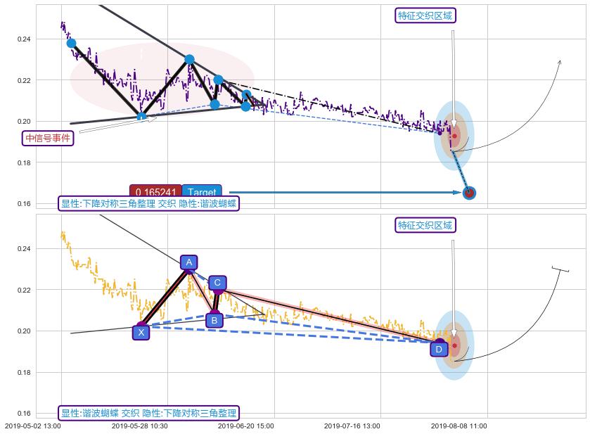 ➢ 下降对称三角整理属【中级别信号事件】谐波蝴蝶属【长级别信号事件】中长周期组合信号事件,中长事件长度比61.57%