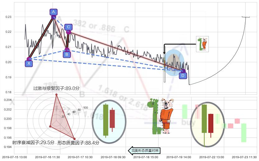 ➢ 🕰 价格走势在2019-07-22 00:00:00至2019-07-23 00:00:00期间形成底部尽头线(上山虎),残存影响值:5.34