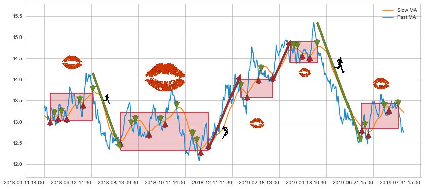 06-06 14:00至07-24 15:00 慢线与快线多次接触,存在上下穿越,有缠绕