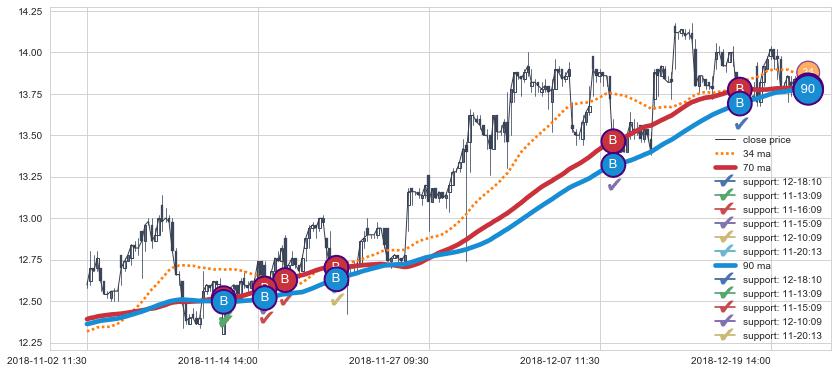 ➢ 最优均线组合共正确确认支撑阻力信号12处,正确确认率 66.67%