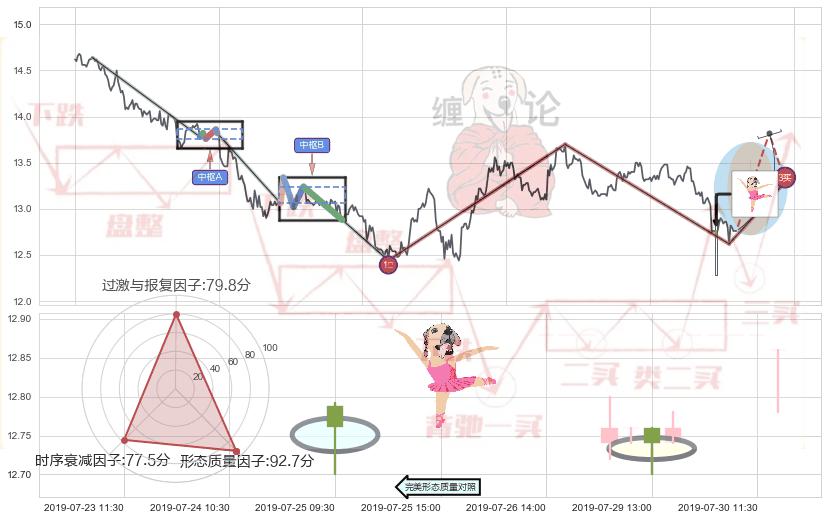 从2019-07-16 10:30至2019-07-31 15:00,共包含71个小时,阶段股价下跌-5.55%,阶段股价变动位移路程比: 1 : 4