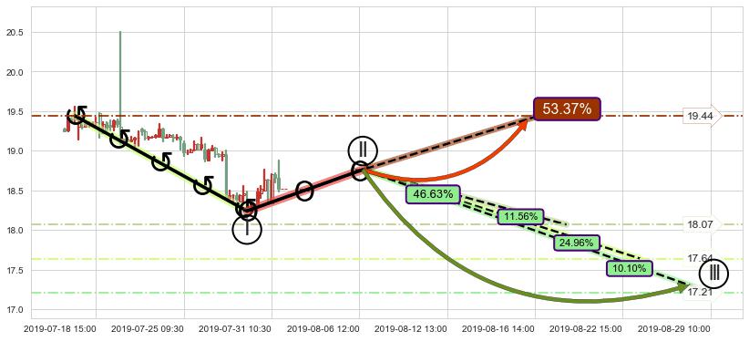 ➣ 循环浪继续向下【平均值】位置(08-23:14, 17.64),匹配聚类样本比例53.54%, 可能性概率24.96%