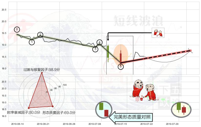 从2019-07-03 11:30至2019-07-08 13:00,共包含20个小时,阶段股价下跌-2.90%,阶段股价变动位移路程比: 1 : 2